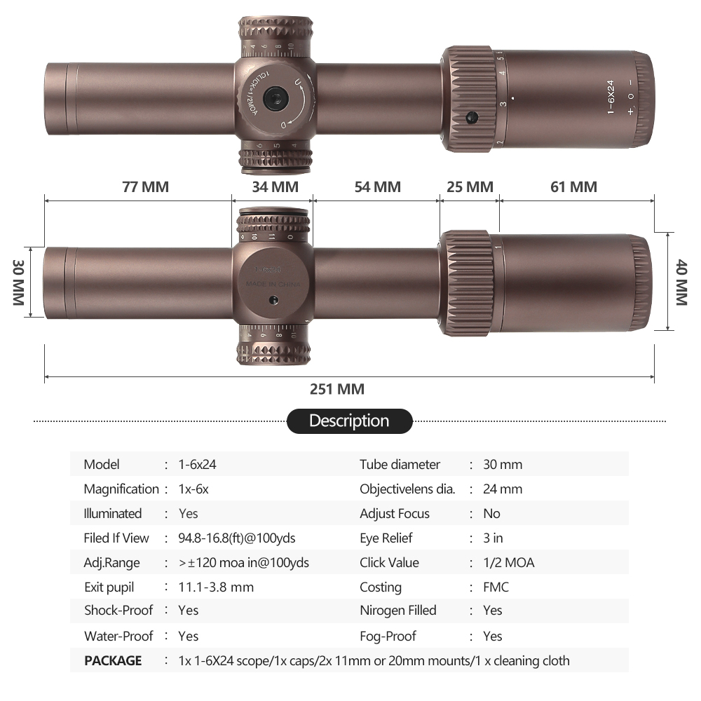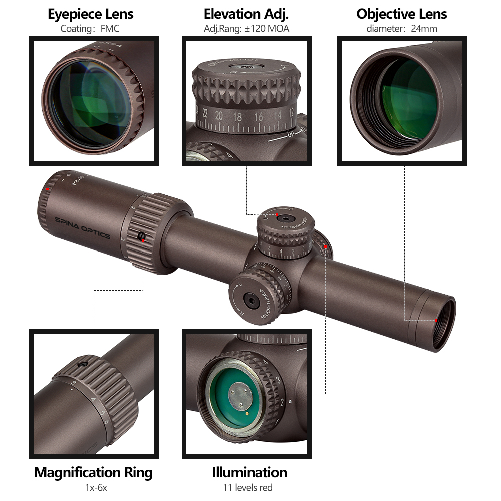 [해외] 6배율 1-6x24 IR 라이플 스코프 쇼트 SPINA SP-1624-IR-TAN