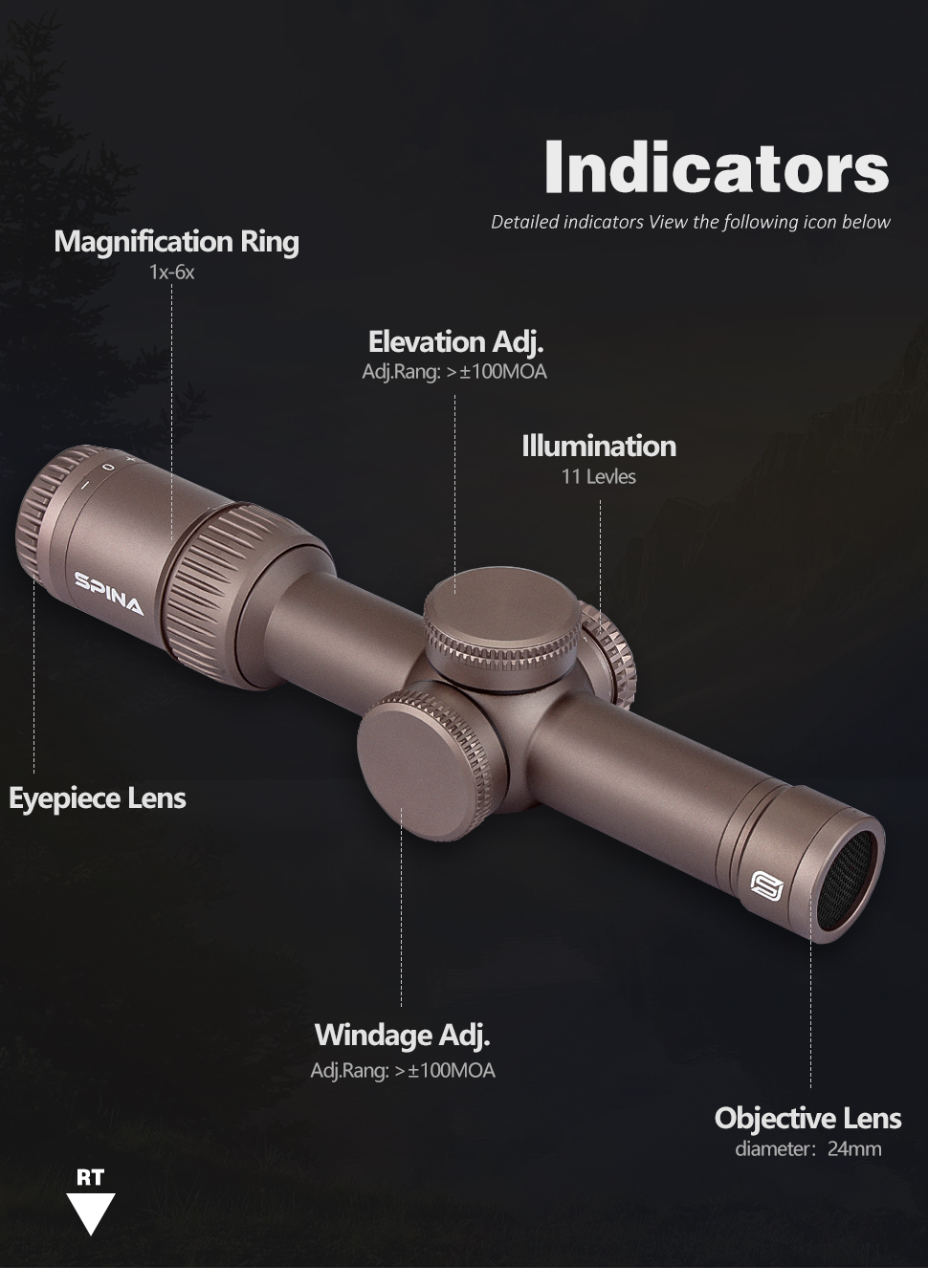 [해외] 6배율 1-6x24 SFP 쇼트 스코프 SPINA SP-1624-CRSFP