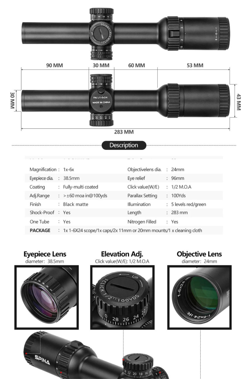 [해외] 6배율 1-6x24 SFP IR 쇼트 스코프 SPINA SP-1624-SFPNFWA