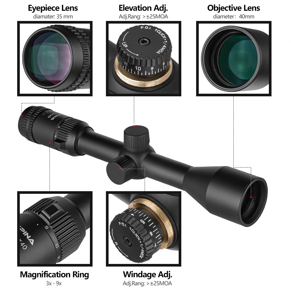 [해외] 9배율 3-9x40 HD 라이플 스코프 SPINA SP-3940