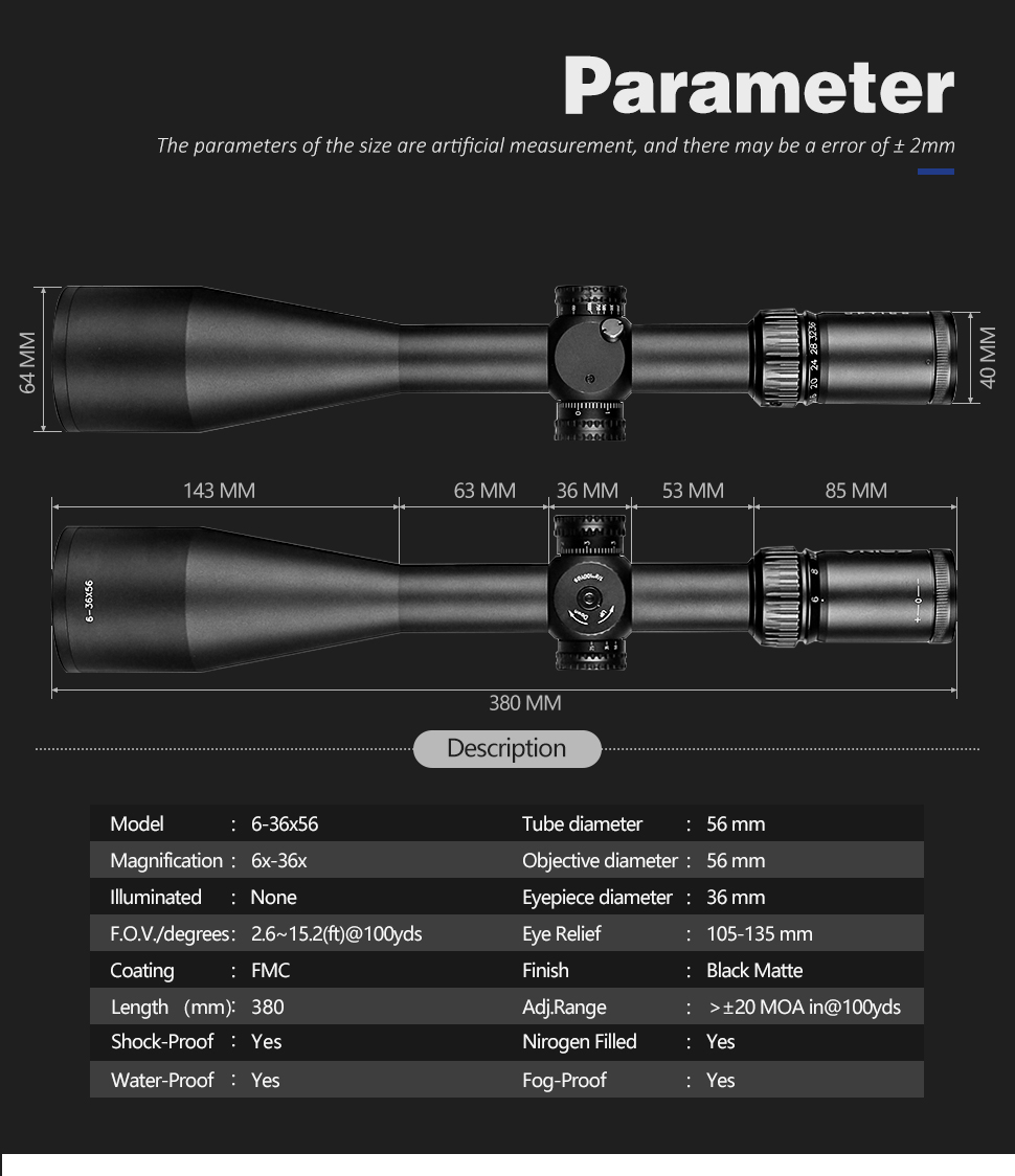 [해외] 36배율 6-36x56 SFP 라이플 스코프 SP-63656-SFP